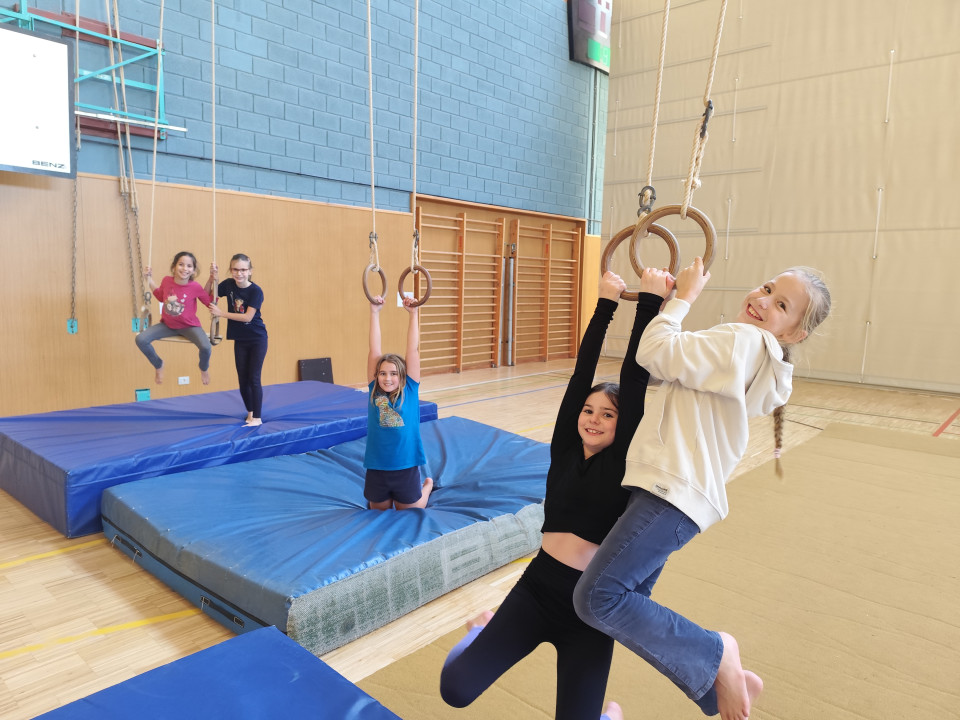 En gimnasia deportiva ganamos experiencia en el movimiento en los aparatos. Vamos a balancearnos, rodar, escalar y mucho más! De la voltereta, el pino y la estrella (preferiblemente ya sabiéndolo hacer) queremos aprender otros trucos acrobáticos, como una voltereta, un volteretazo o un flick flack.