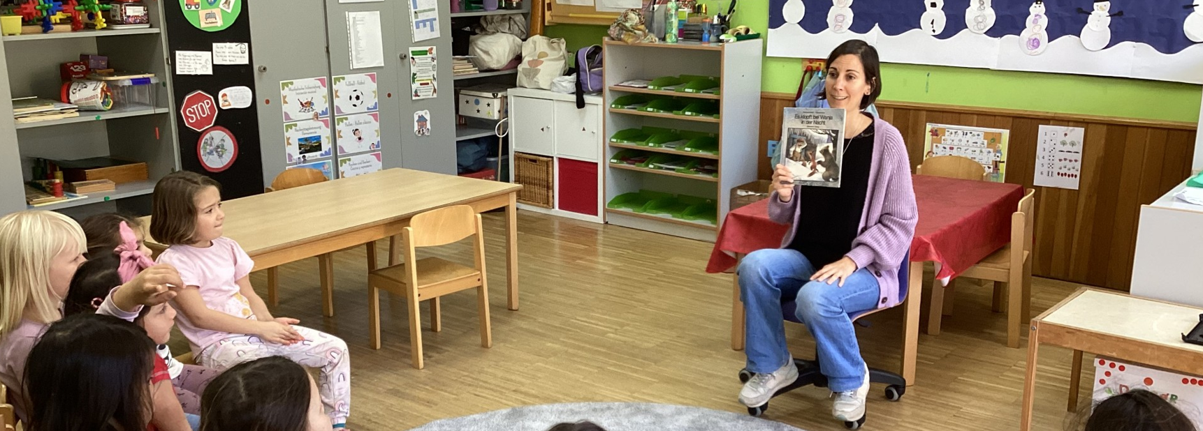 Los cuentos ilustrados son una base firme para el desarrollo específico del fomento del alemán. Los contenidos y,sobre todo,las ilustraciones, apoyan la necesidad de comunicar de l@s niñ@s. Junto con el alemán, la comprensión, la concentración y la percepción, aportan al niño vínculos lógicos que aprenden a interpretar. Canciones, teatro, dibujos para colorear y " cine cuento" redondean la actividad.